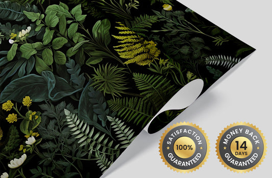 Dark Botanical Wallpaper | Dark Peel and Stick Wallpaper | Fern Removable Mural | Vintage Botanical Mural | Eco Friendly