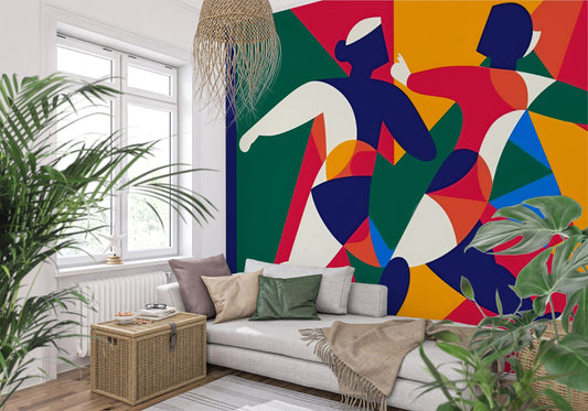 Abstract Couple Mural | Colourful Removable Mural | Abstract Wallpaper Colorful | Abstract Wallpaper | Colorful Abstract Art Wallpaper