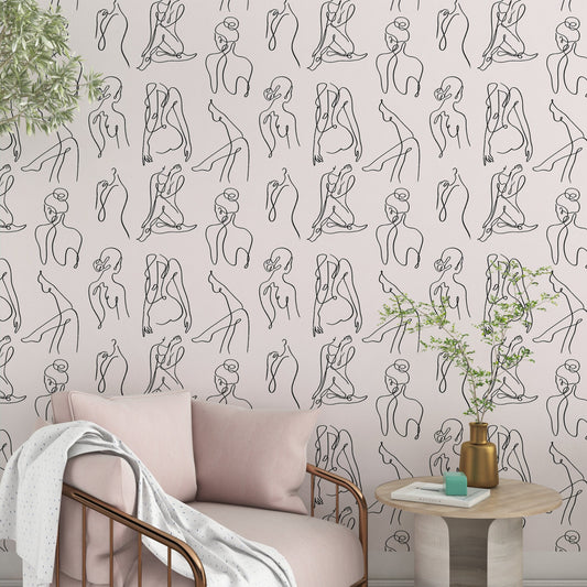 Female Body Wallpaper | Line Art Removable Peel & Stick Wallpaper | Female Body Line Art Decor | Minimalistic Art Peel and Stick Wallpaper