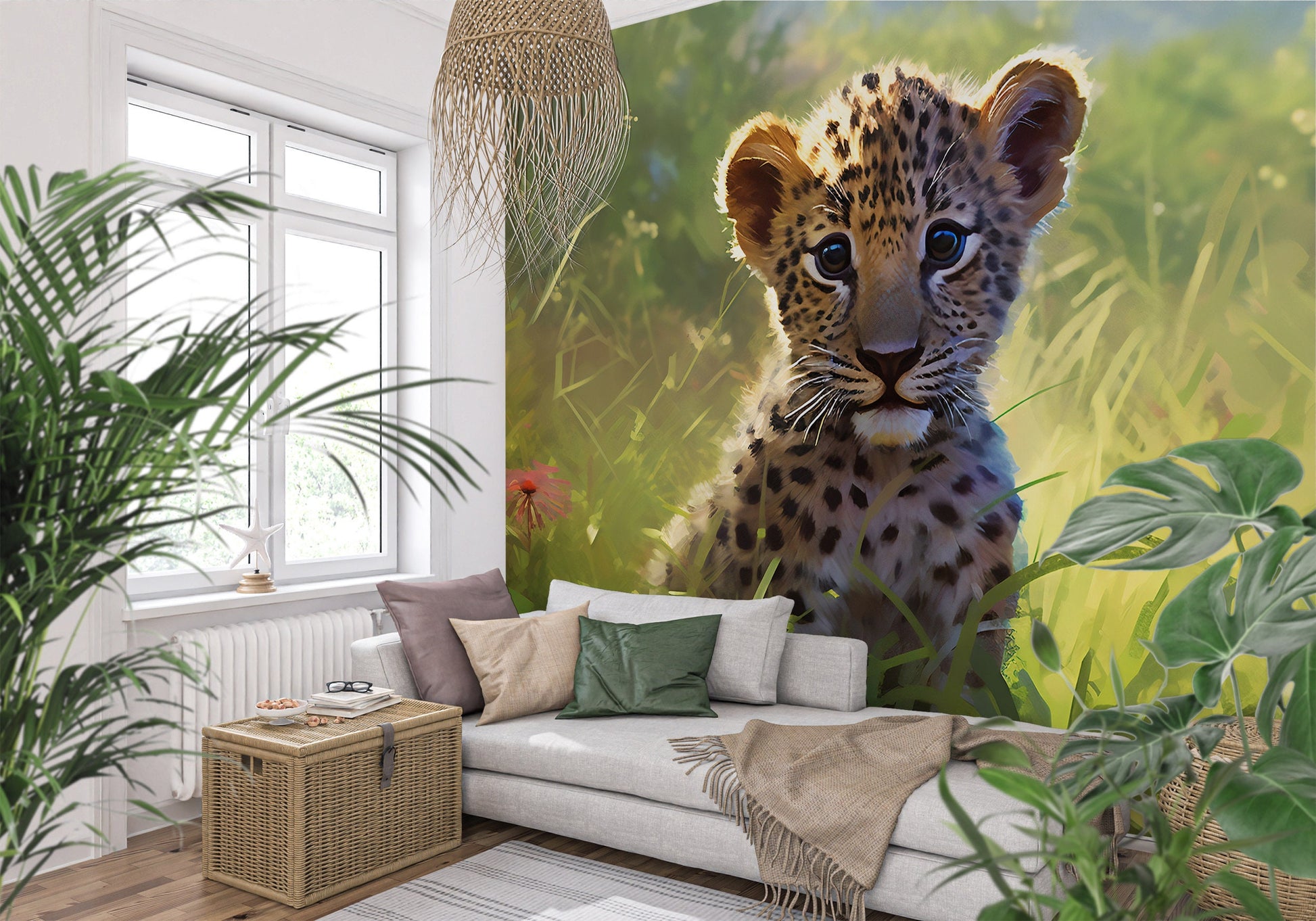 Leopard Wallpaper for Kids Room | Cute Animal Mural for Nursery | Nursery Eco-friendly Mural | Leopard Wallpaper | Watercolour Animal Mural