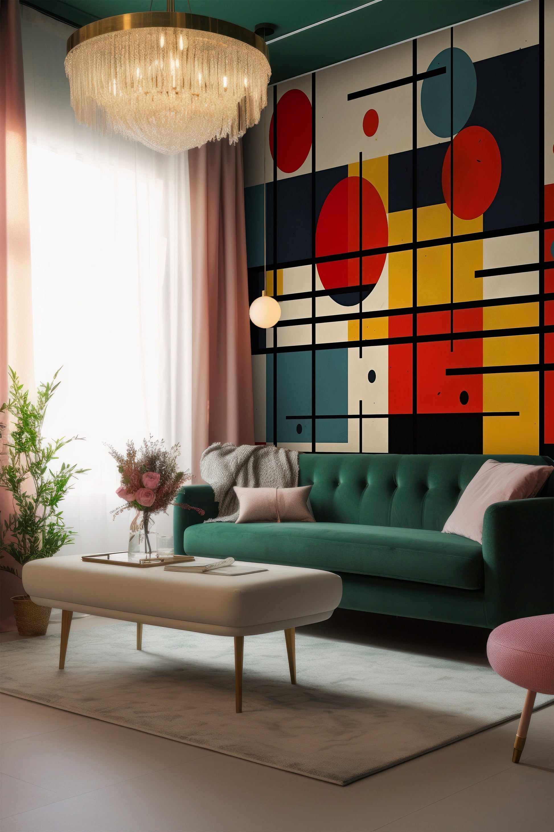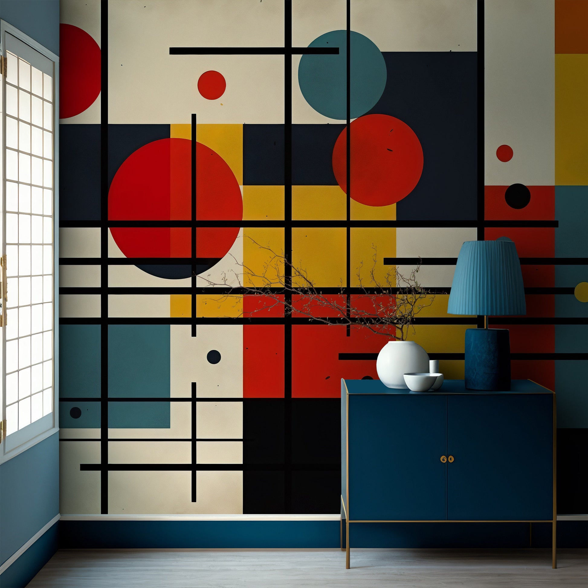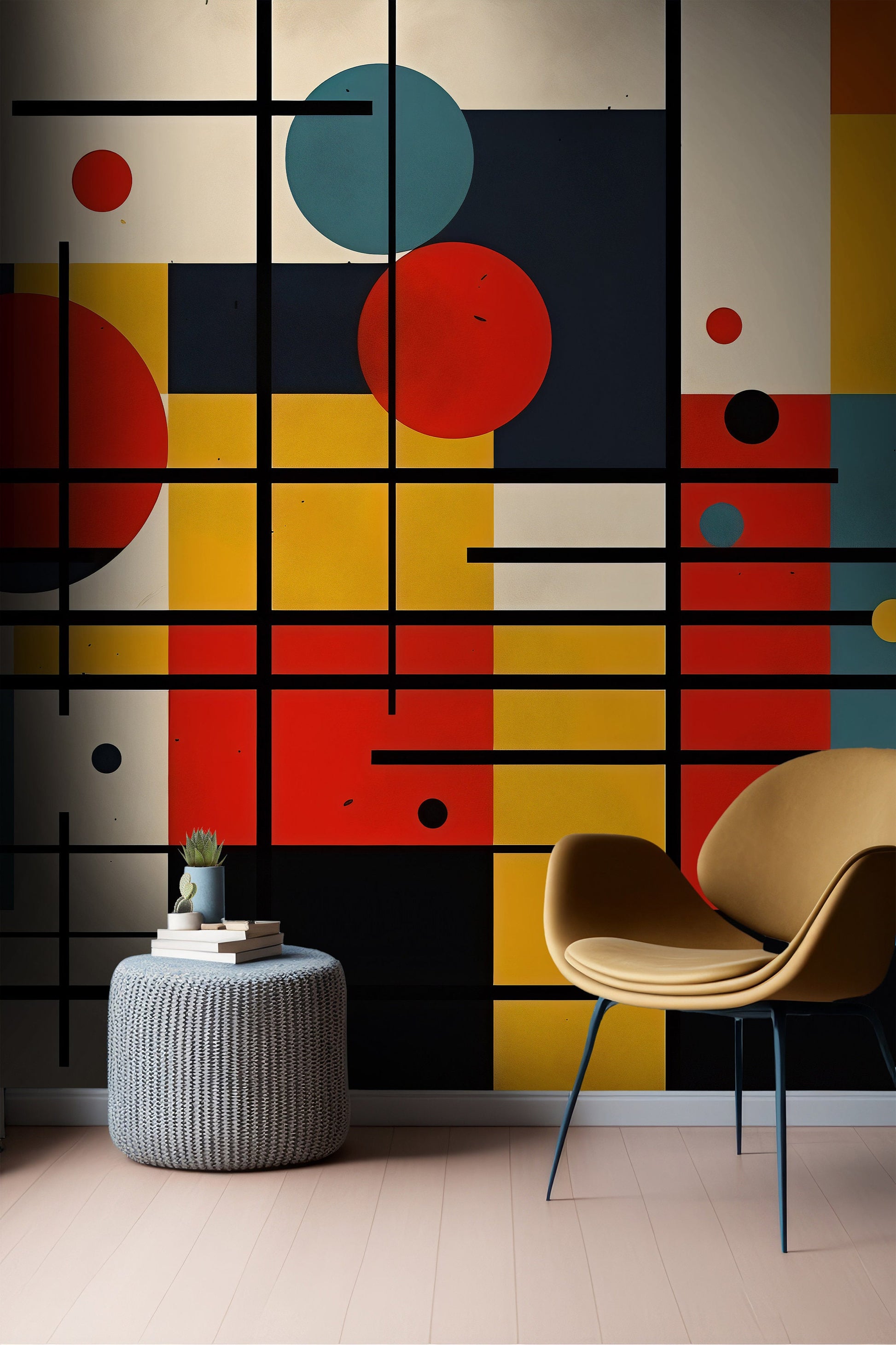 Mondrian Wallpaper | Colourful Geometric Removable Wallpaper | Abstract Art Peel and Stick Wallpaper | Geometrical Colorful Mural | PVC Free