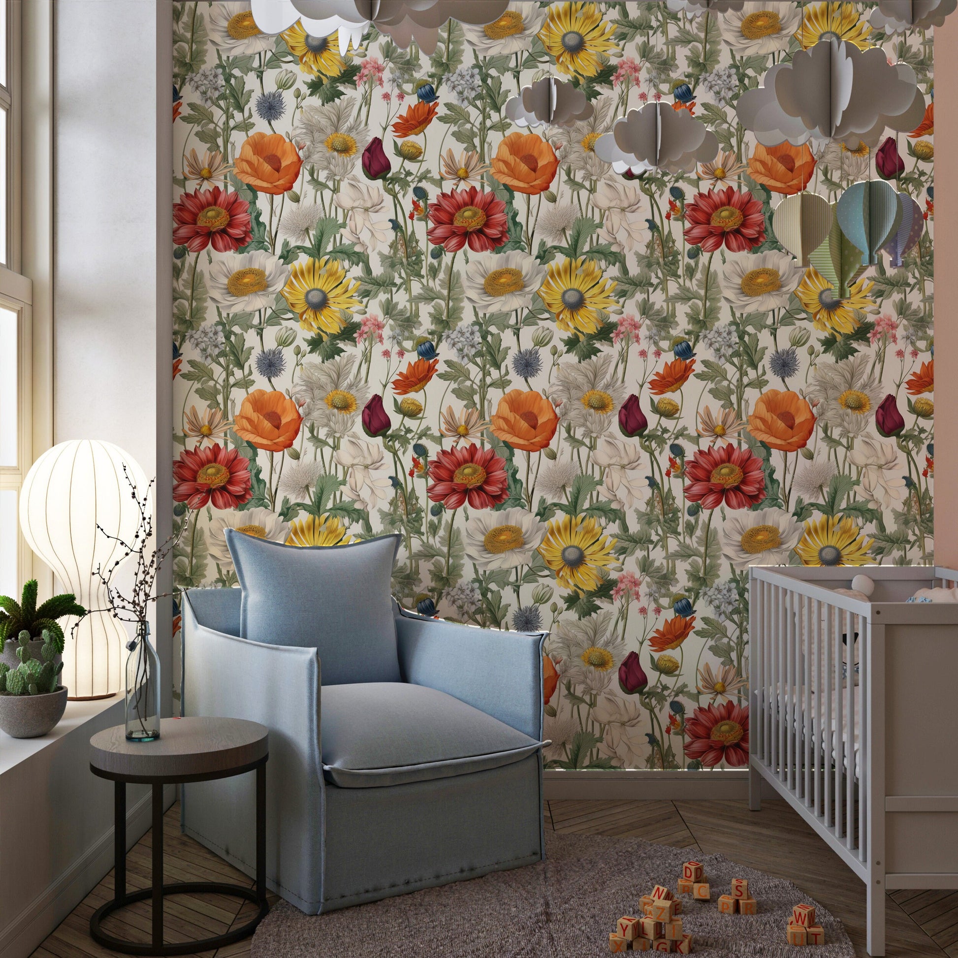 Summer Floral Wallpaper | Field Flowers by Miami Walls and Decor | Peel & Stick Wallpapers, Removable and Renter Friendly