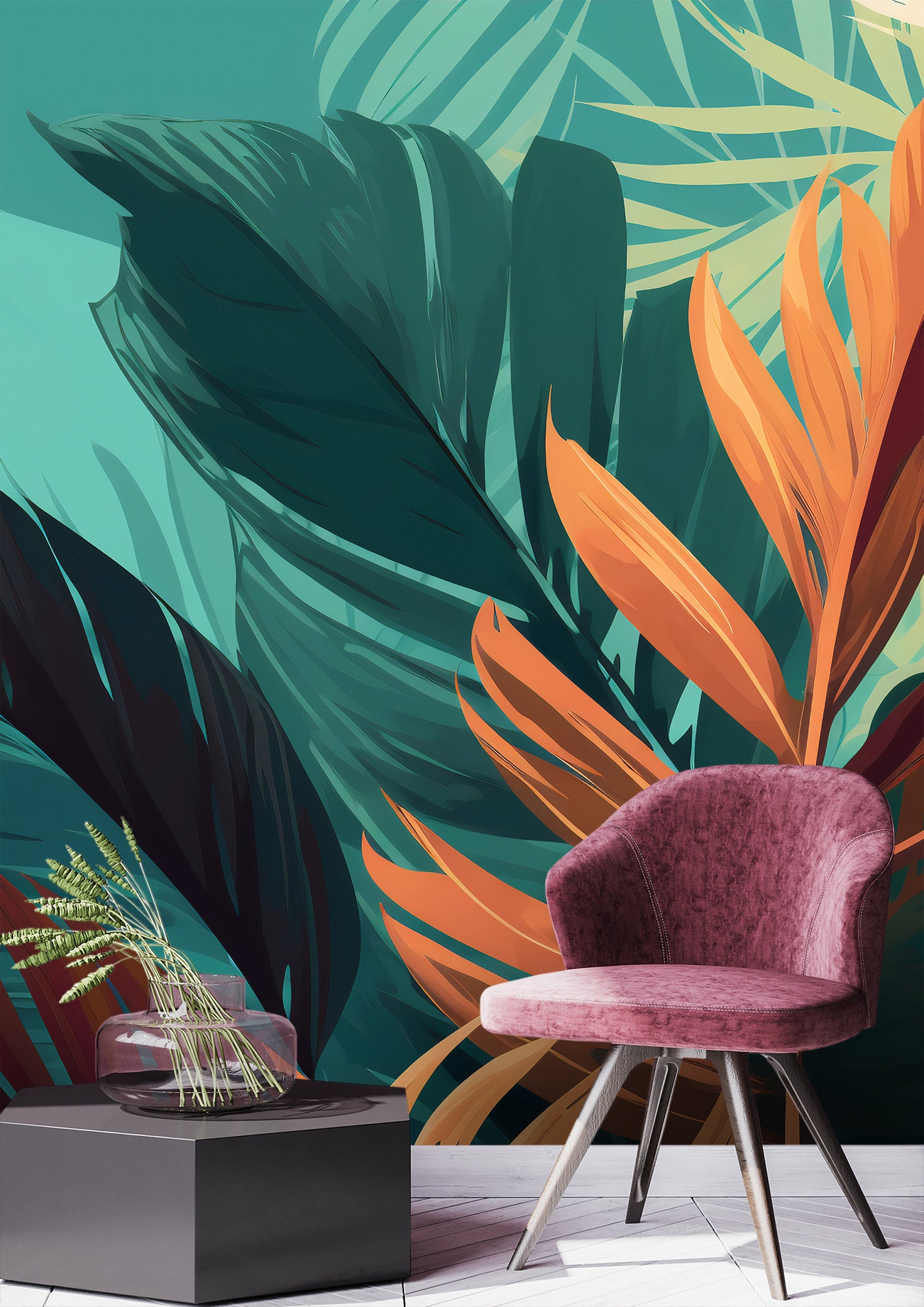Tropical Leaves Wallpaper | Botanical Wallpapers by Miami Walls and Decor | Peel & Stick Wallpaper, Removable and Renter Friendly