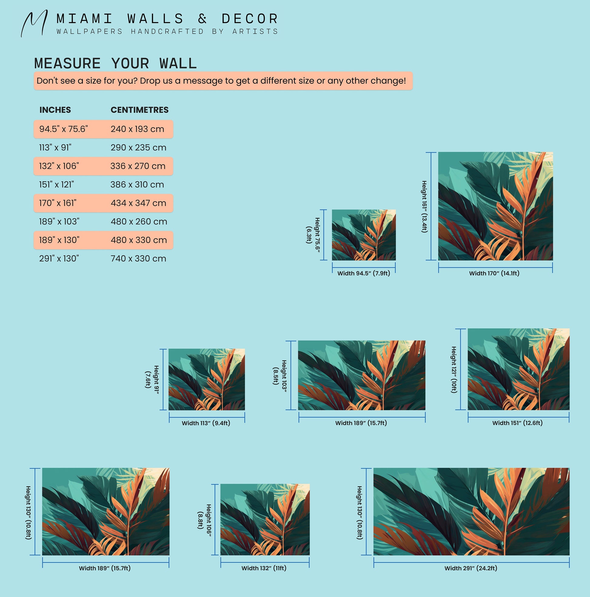 Don't see the size you need? Contact us via chat or email at info@miamiwallsanddecor.com for custom sizing or any other modifications!
