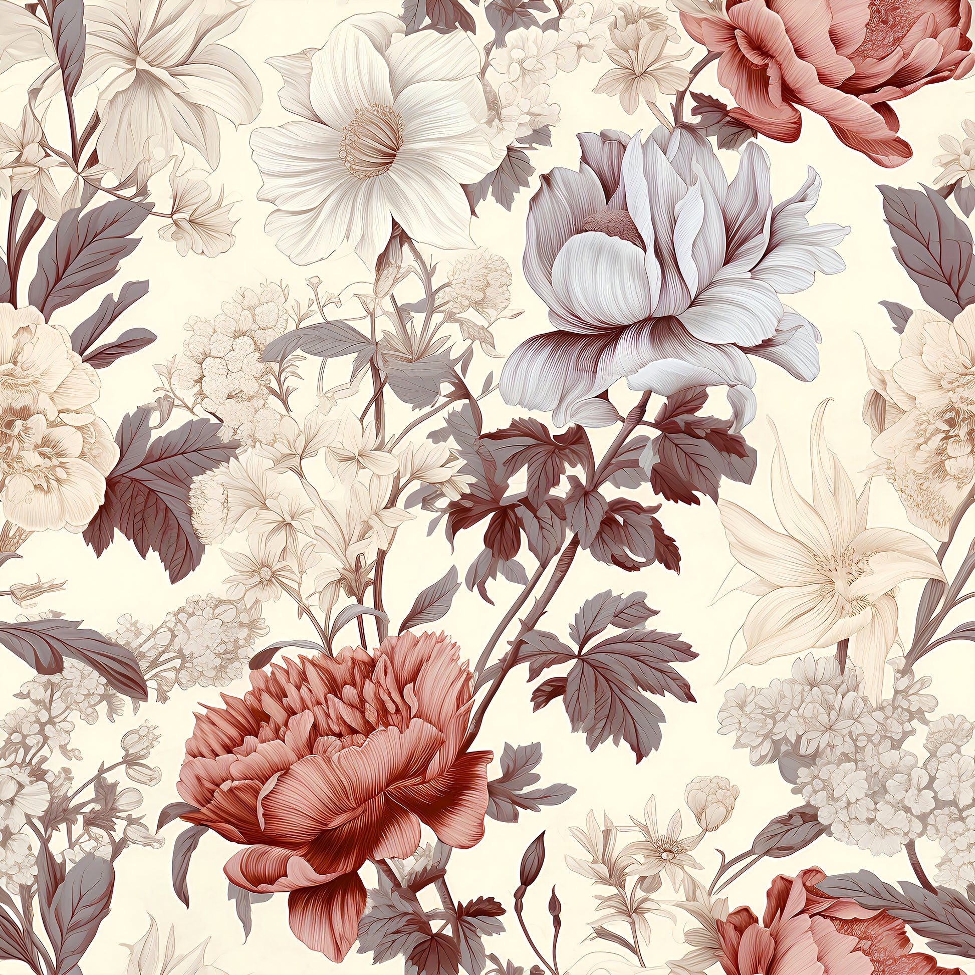 Vintage Beige Flowers Wallpaper | Elegant Botanic Wall Print | Floral Removable Wallpaper | Peel & Stick Wallpaper